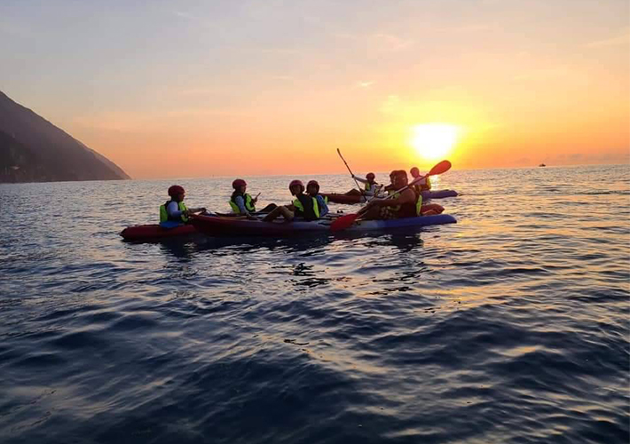 現在除了開車以外,更可以乘著獨木舟來一趟和大自然的對話,乘著獨木舟在湛藍的海域上望著眼前的海天一線,感受著日出的斑斕壯闊!日出時的陽光讓我們也可以在最舒適的狀態下盡情享受陽光的正能量,在日出後望向絕壁,便可看見大自然留給我們的山海絕景,就讓山海王家族帶著大家體驗有趣的活動,並更加深深愛上這單純的大自然魅力。